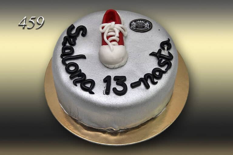 Tort na bazie jasnego biszkoptu nasączonego syropem, przełożonego kremowo – kawową masą z dodatkiem rodzynek i mlecznej czekolady.
